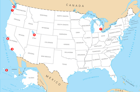 Kaart Verenigde Staten.